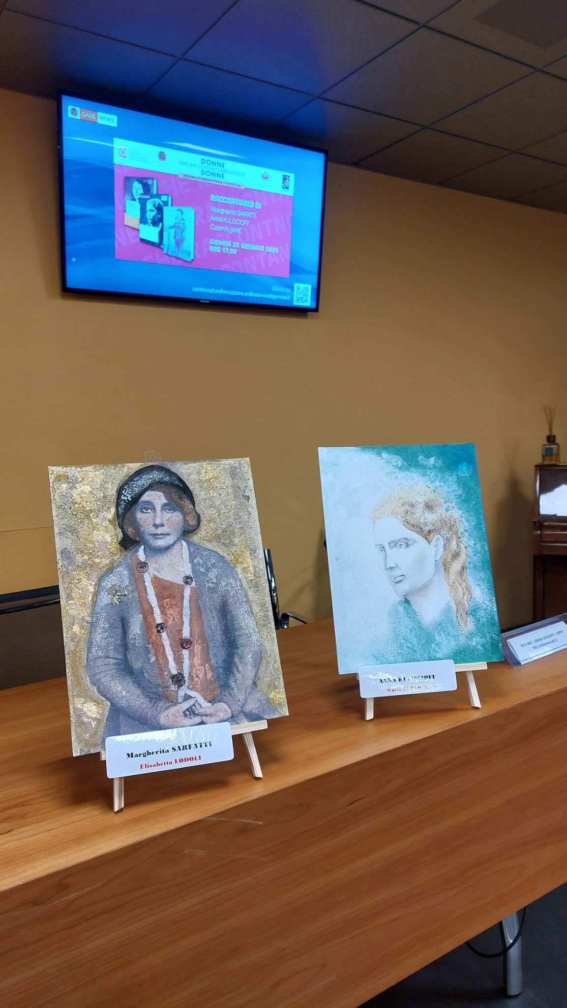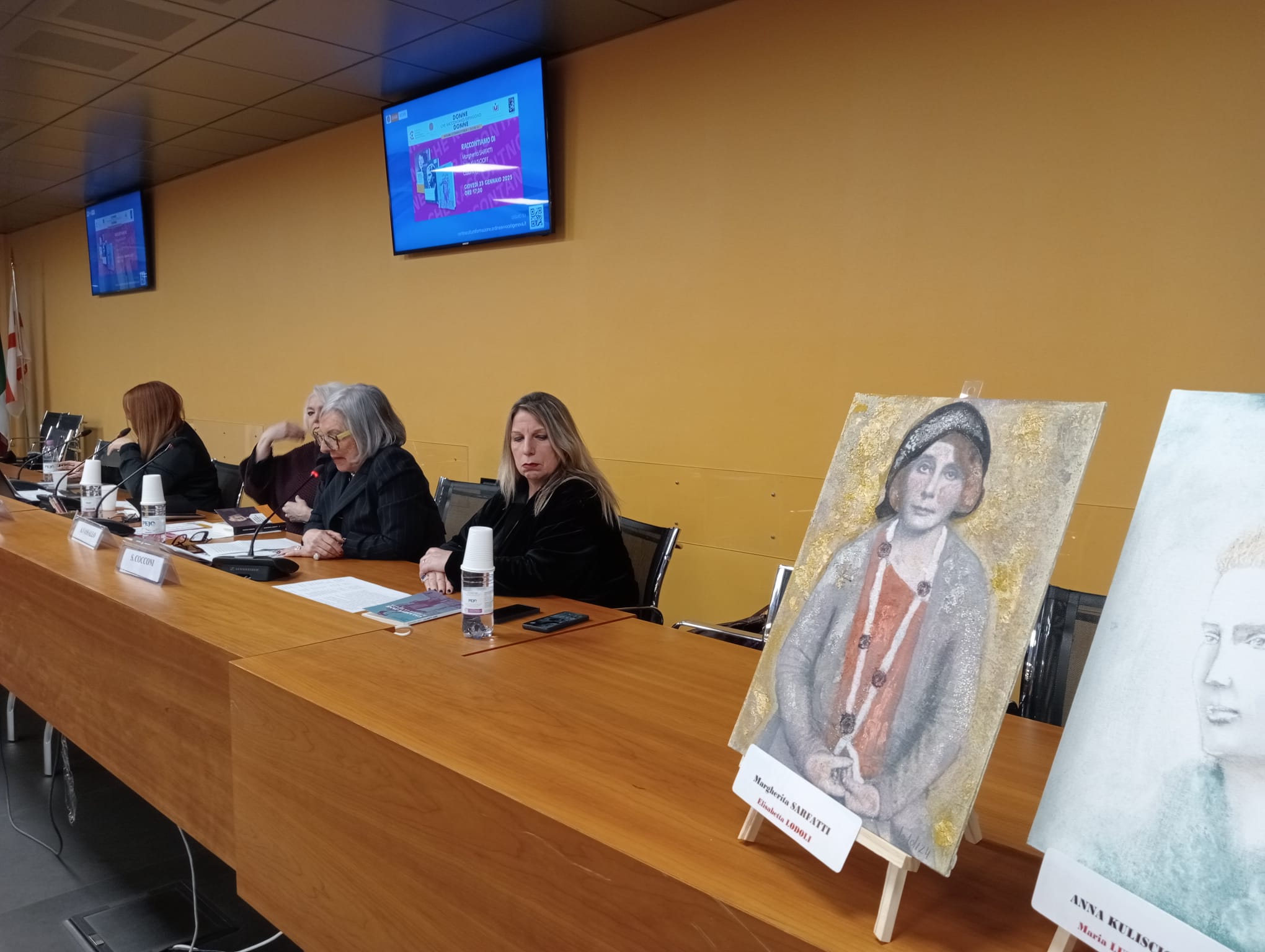 Ogni volta diverse artiste dipingeranno il ritratto delle quattro donne di cui viene presentata la biografia, ritratto che resterà esposto ne locali del Centro Cultura per due mesi (per tutto il mese in cui si tiene l’incontro e per tutto il mese successivo) e che nei giorni degli incontri saranno temporaneamente collocati su cavalletto e esposti nella sala ove si tiene l’incontro. Alla fine dell’anno 2025 i ritratti saranno nuovamente esposti tutti insieme in una mostra collettiva, che comprenderà in tutto 53 ritratti